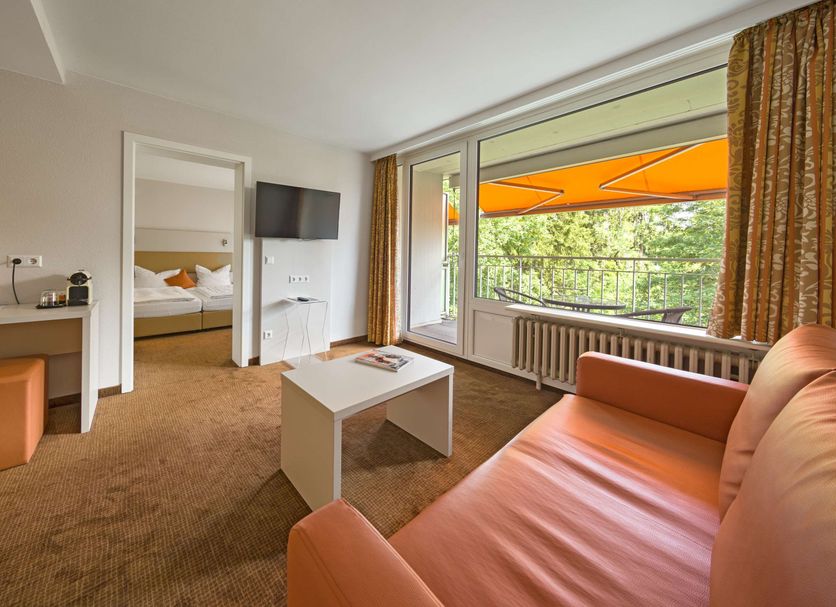 The Sure Hotel by Best Western Bad Durrheim is in a quiet location right next to the spa gardens in the town center. A newly designed, spacious lobby, elevator, breakfast restaurant, and free parking spaces await you. The hotel combines traditional Black Forest elements with fresh colors and a modern atmosphere. Our approximately 80 spacious rooms are equipped with shower/toilet, flat screen TV, desk, and almost all have a balcony. W-LAN are free of charge! Various massage and wellness offers are available in the wellness department. For concentrated work, we offer you 1 quiet conference room, equipped with modern conference technology and daylight. Or take advantage of the many recreational opportunities nearby. The nearby Therme Solemar, the adventure golf course for everyone, 35 km of cycling and hiking trails, or visit the Narrenschopf - Germany's largest mask museum. For even more mobility, you can also rent an e-bike.