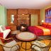 Rooms range from budget style accommodations to luxury suites. Regardless of the style selected, each has full climate controls, a mini-fridge, flat-screen TV, Bluetooth enabled alarm clocks, shared or private balconies, and many have private bathrooms. The décor is cheerful and stylish, adding to the enjoyment of a stay, and most feature dining or work tables.