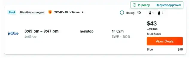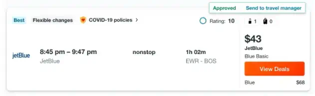 KAYAK for Business will additionally mark whether the booking was in compliance with your company’s travel policies. This means Travellers, Managers, and Finance teams can focus only on finding out why the booking is out of policy.