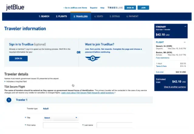 2. Select the trip you have booked