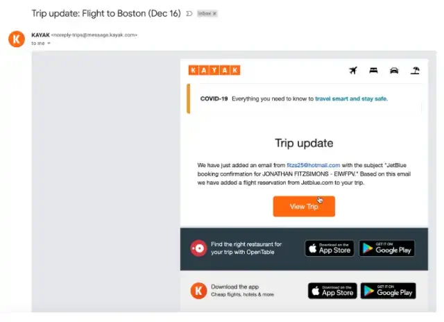 3. KAYAK for Business will now forward bookings made by each employee to their Expensify account